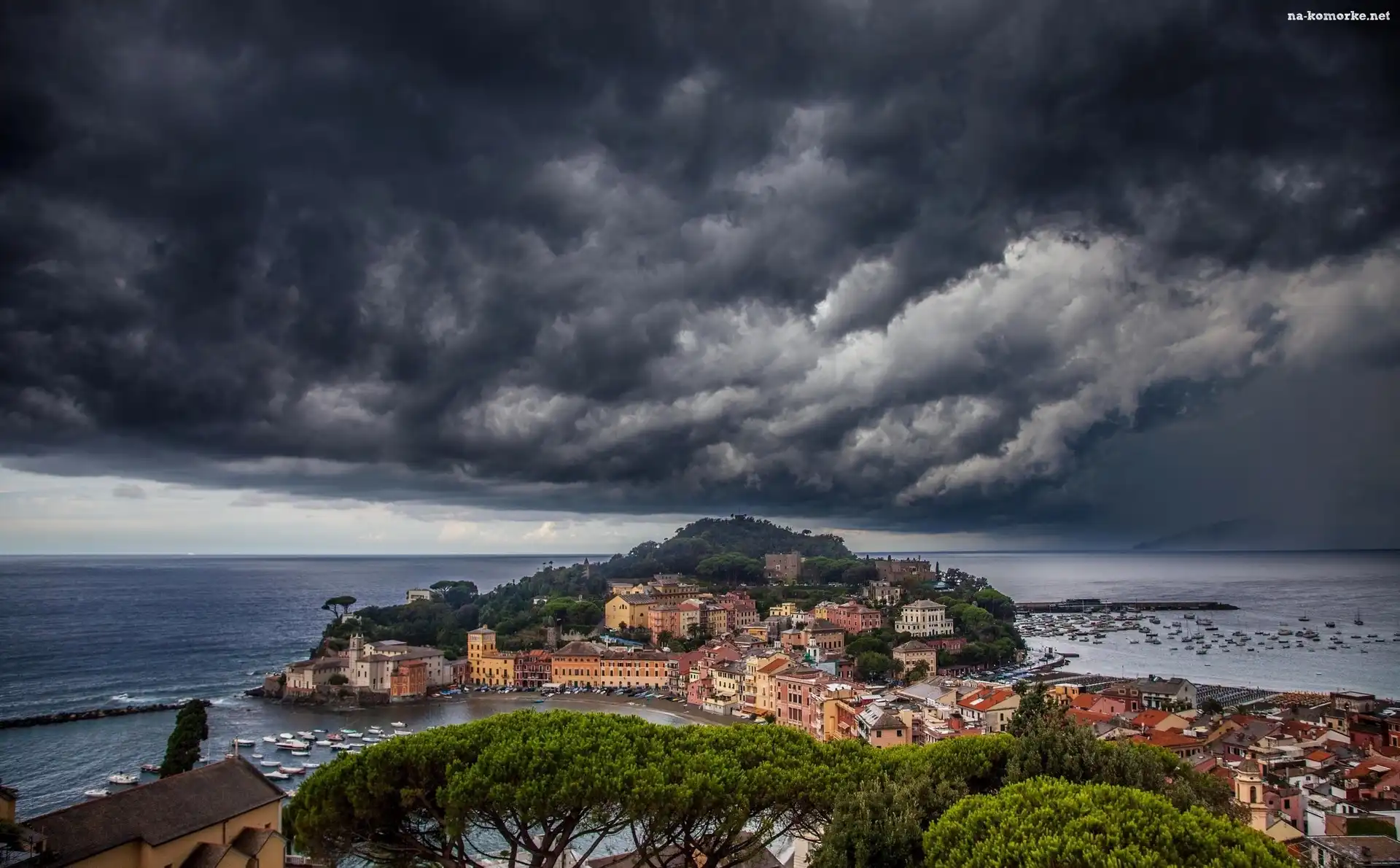 Drzew, Morze, Miasto, Chmury, Wierzchołki na Komórkę