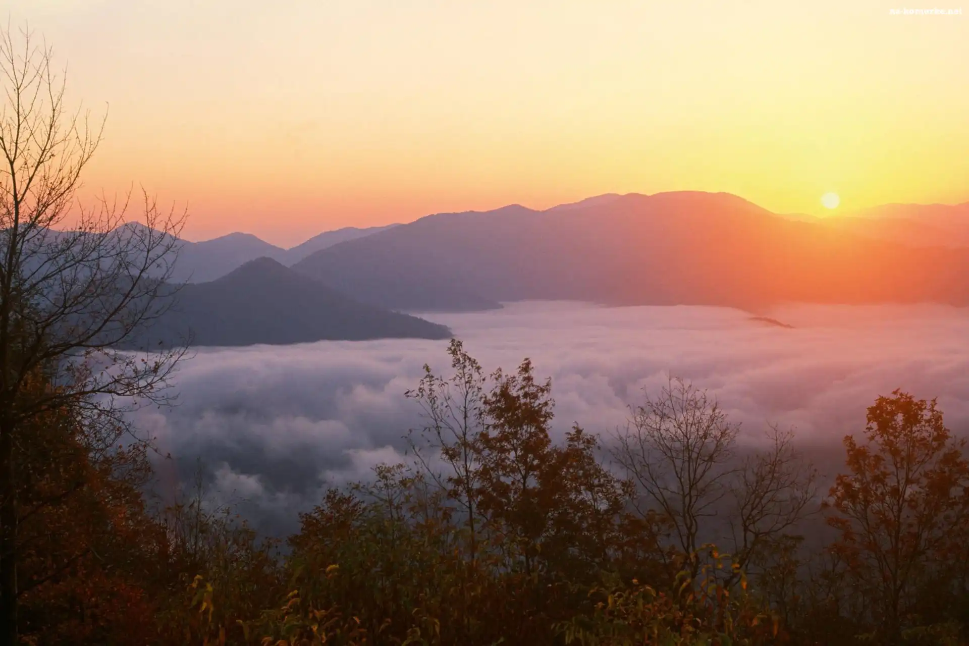 Drzew, Zachód, Słońca, Góry, Wierzchołki na Komórkę