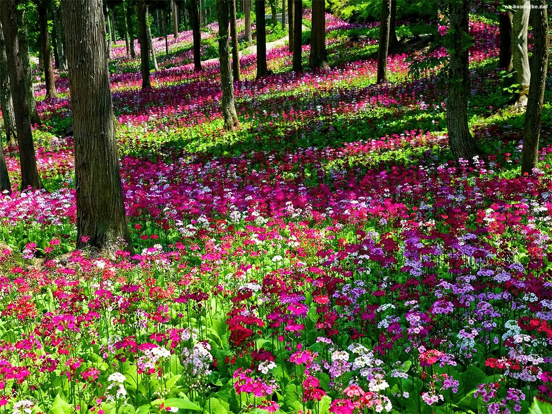 Drzewa, Kwiaty, Łąka, Kolorowe na Komórkę