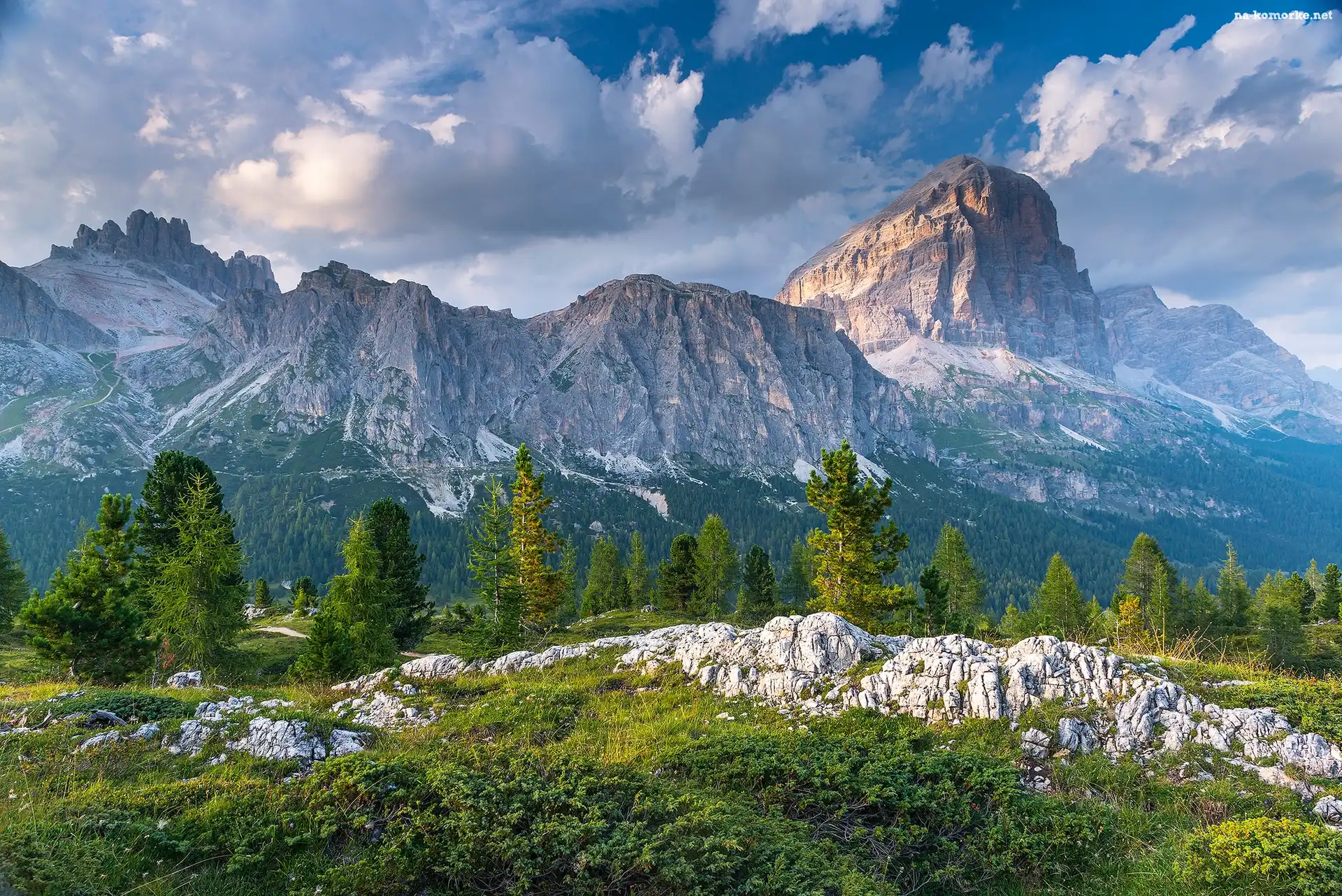 Szczyt Piz Boe, Dolomity, Włochy, Skały, Góry Sella, Drzewa na Komórkę