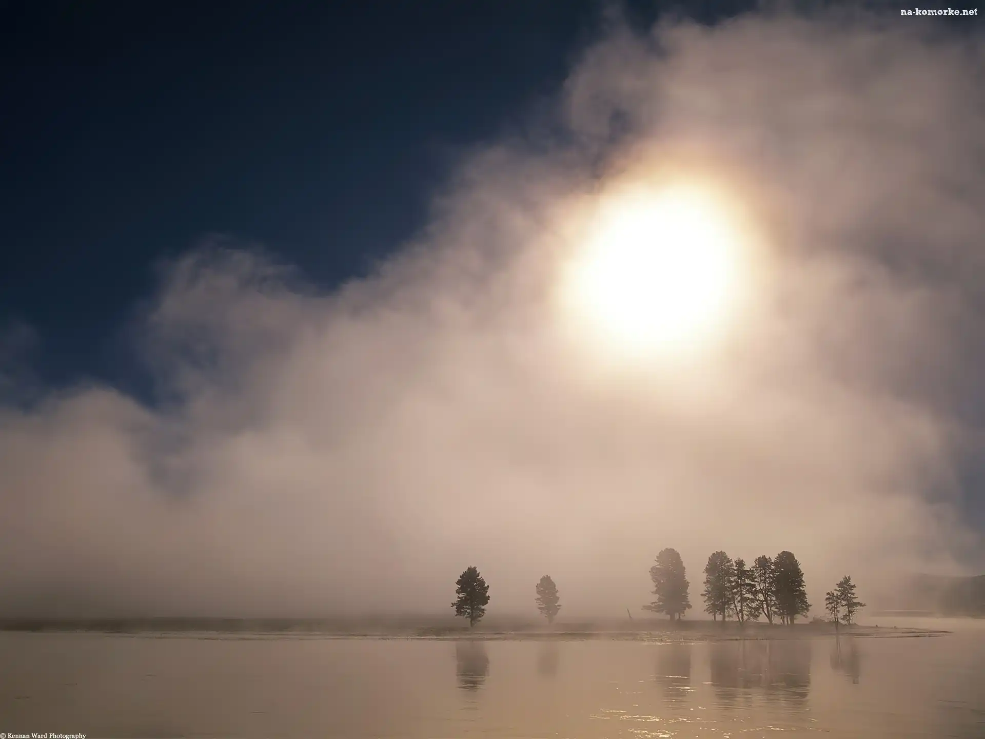 Drzewa, Słońce, Za, Chmurami, Jezioro na Komórkę