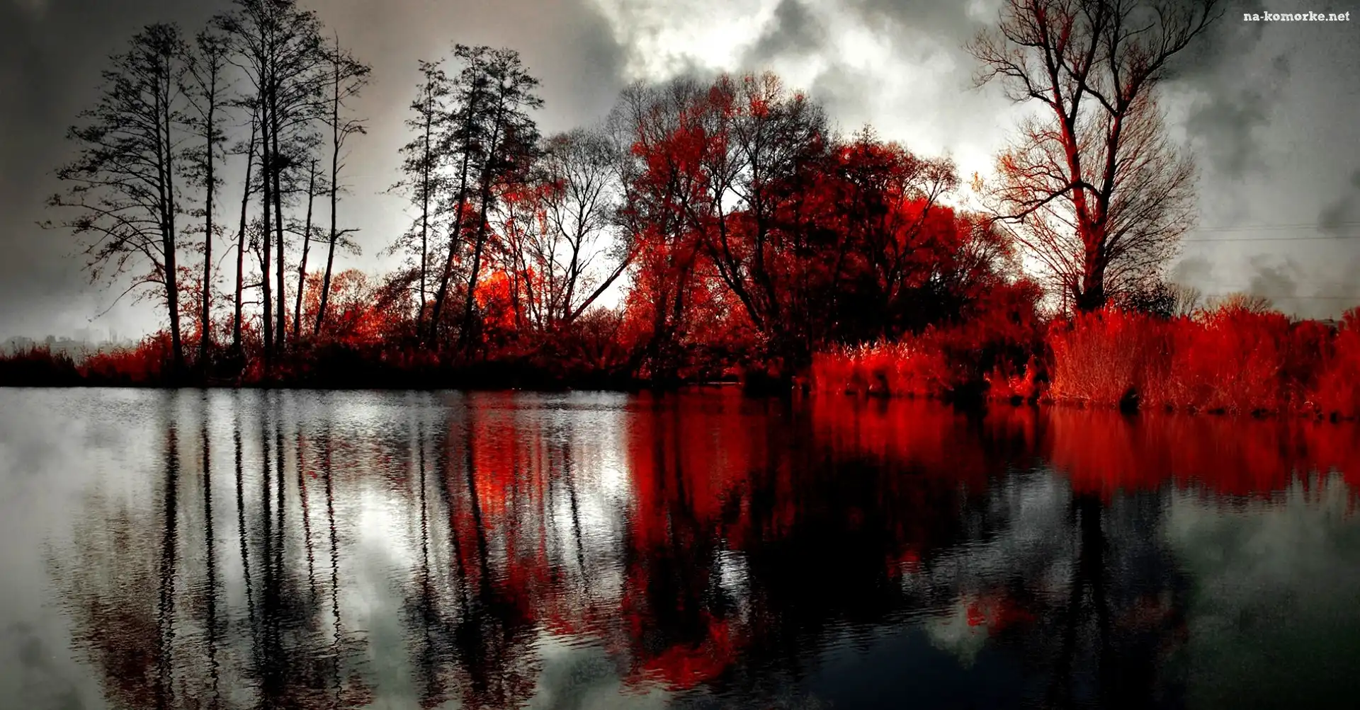 Drzewa, Park, Jezioro, Chmury, Kolorowe na Komórkę