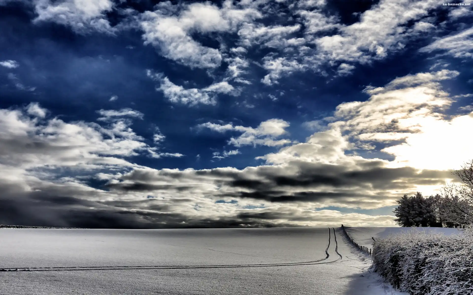 Drzewa, Zima, Chmury, Śnieg na Komórkę