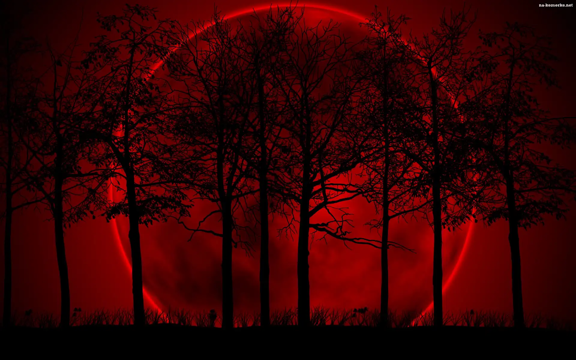 Drzewa, Planeta, Czerwone, Niebo na Komórkę