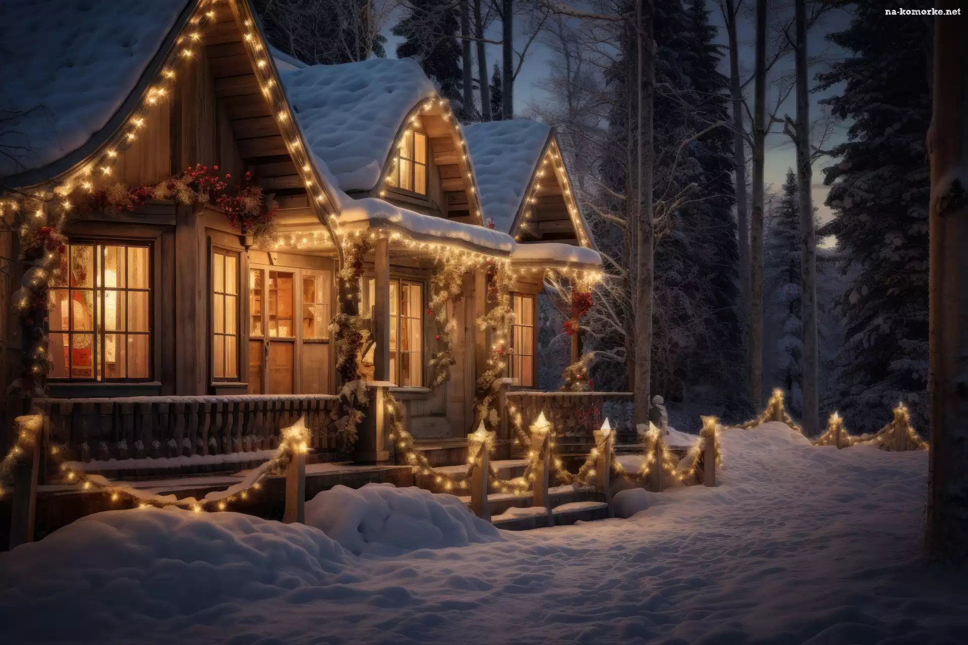 Las, Zima, Dekoracje, Drzewa, Dom, Boże Narodzenie na Komórkę