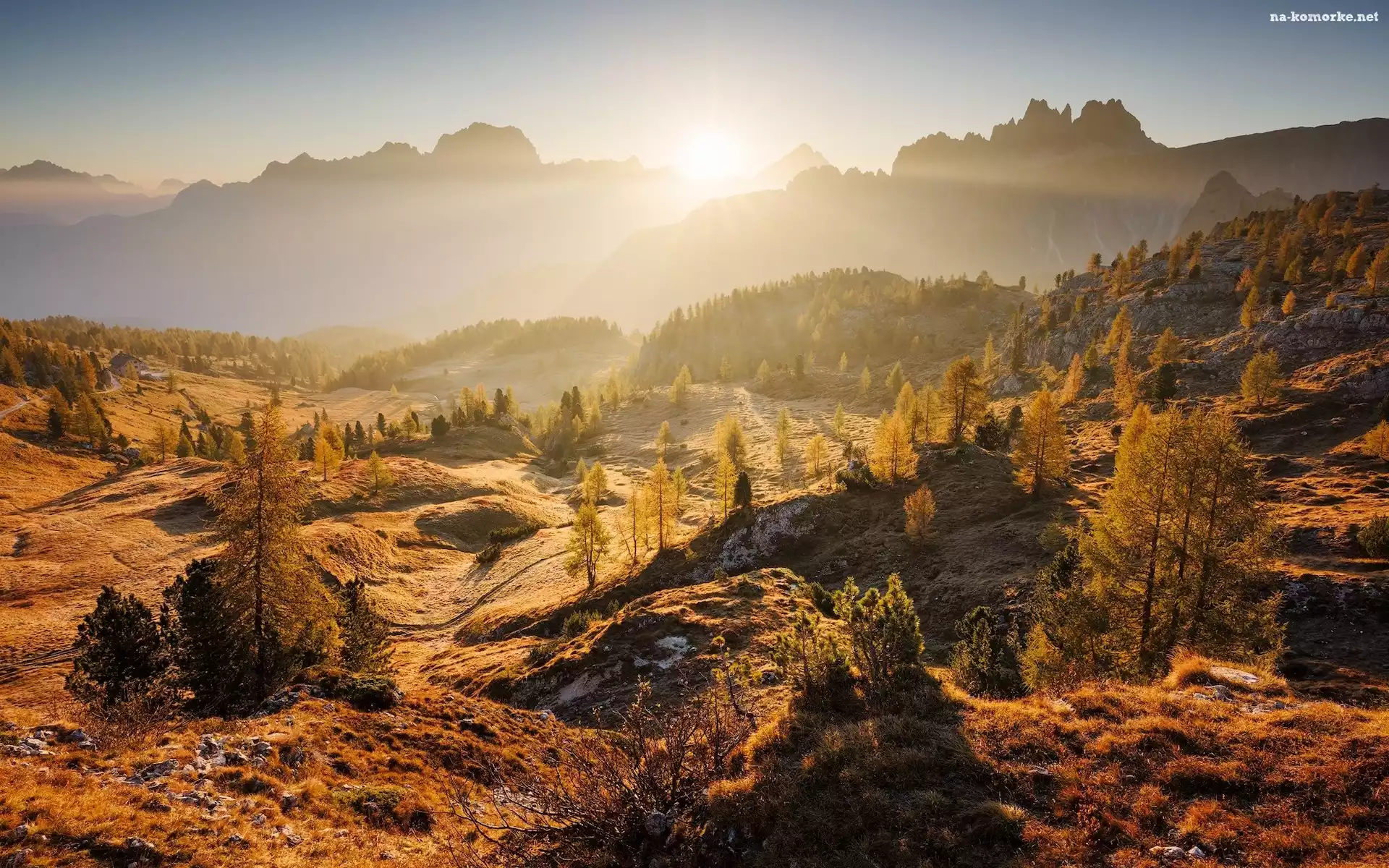 Roślinność, Góry, Jesień, Drzewa, Włochy, Dolomity na Komórkę