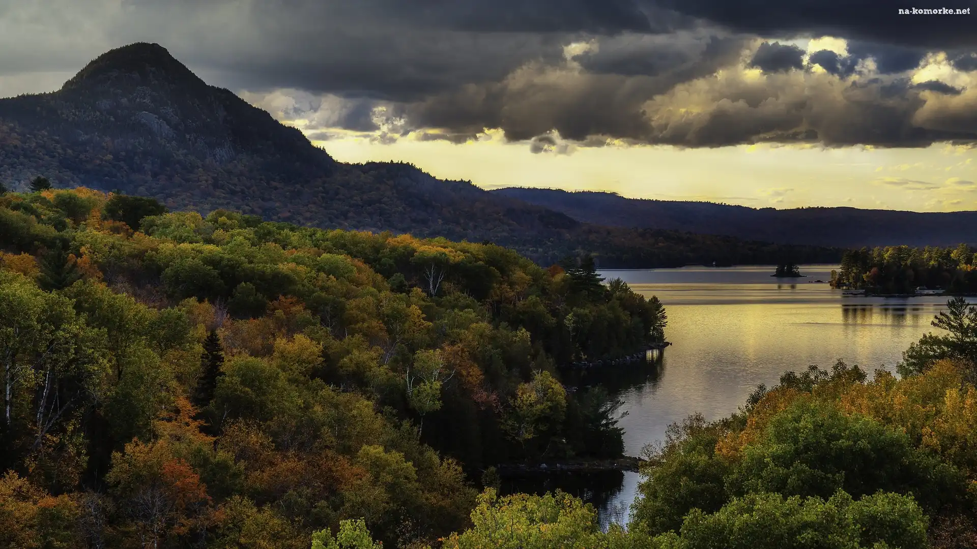 Drzewa, Jezioro, Jesień, Chmury, Góry, Lasy na Komórkę