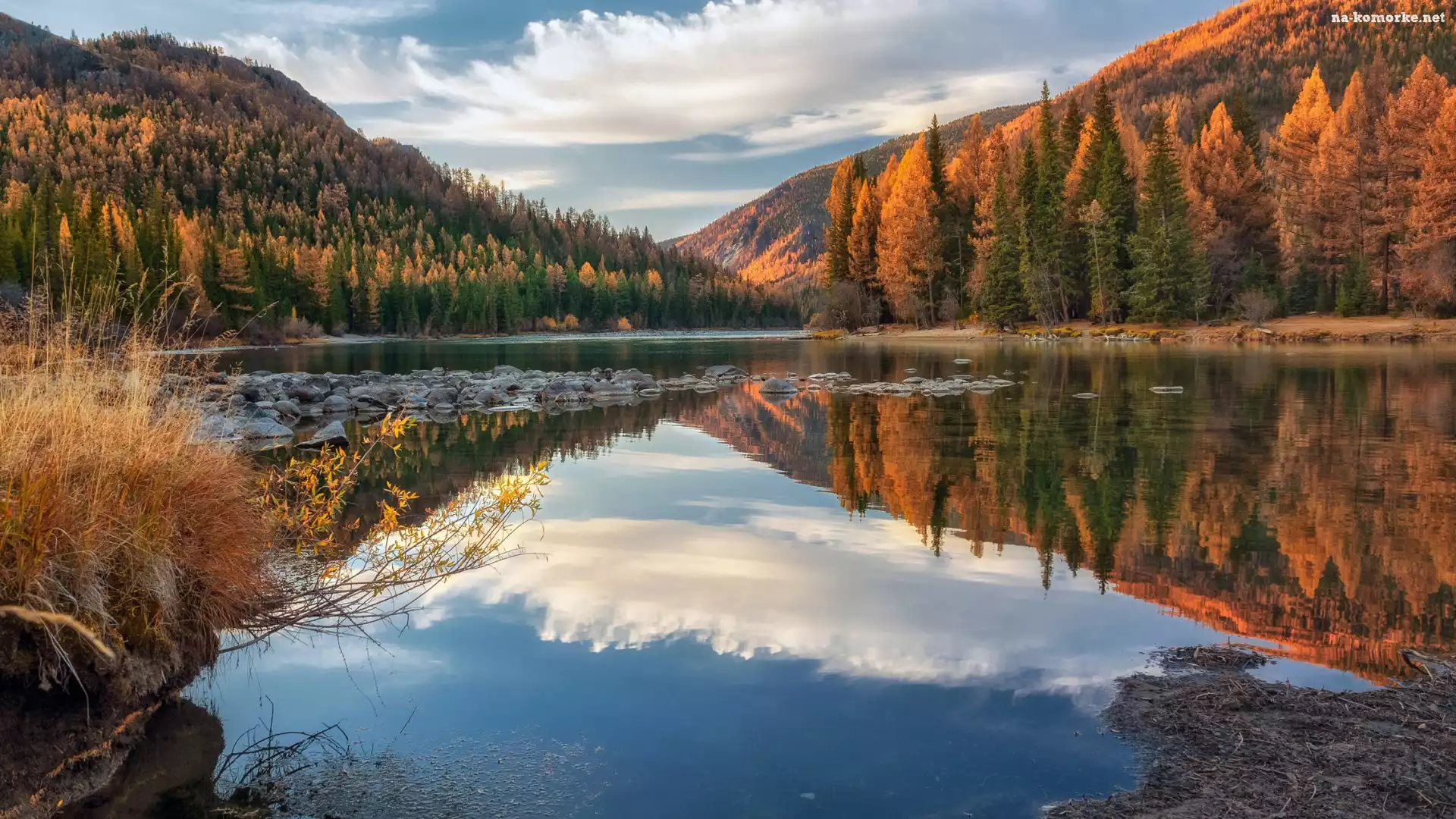 Drzewa, Las, Rosja, Argut, Rzeka, Góry, Jesień, Pożółkłe, Ałtaj na Komórkę