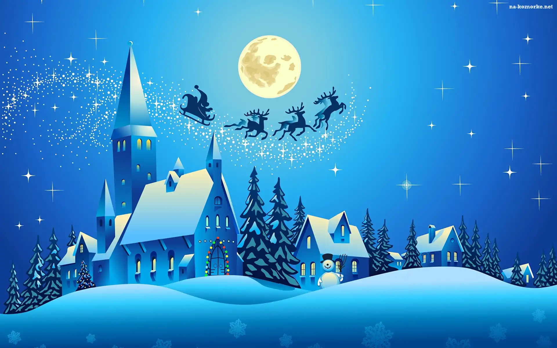 Zaprzęg, Bałwan, 2D, Zima, Gwiazdy, Noc, Mikołaja, Miasteczko, Księżyc, Drzewa na Komórkę