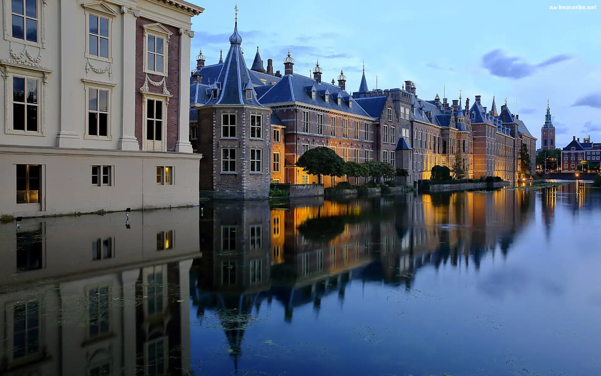 Staw Hofvijver, Haga, Budynki, Holandia, Odbicie, Binnenhof, Domy, Drzewa na Komórkę
