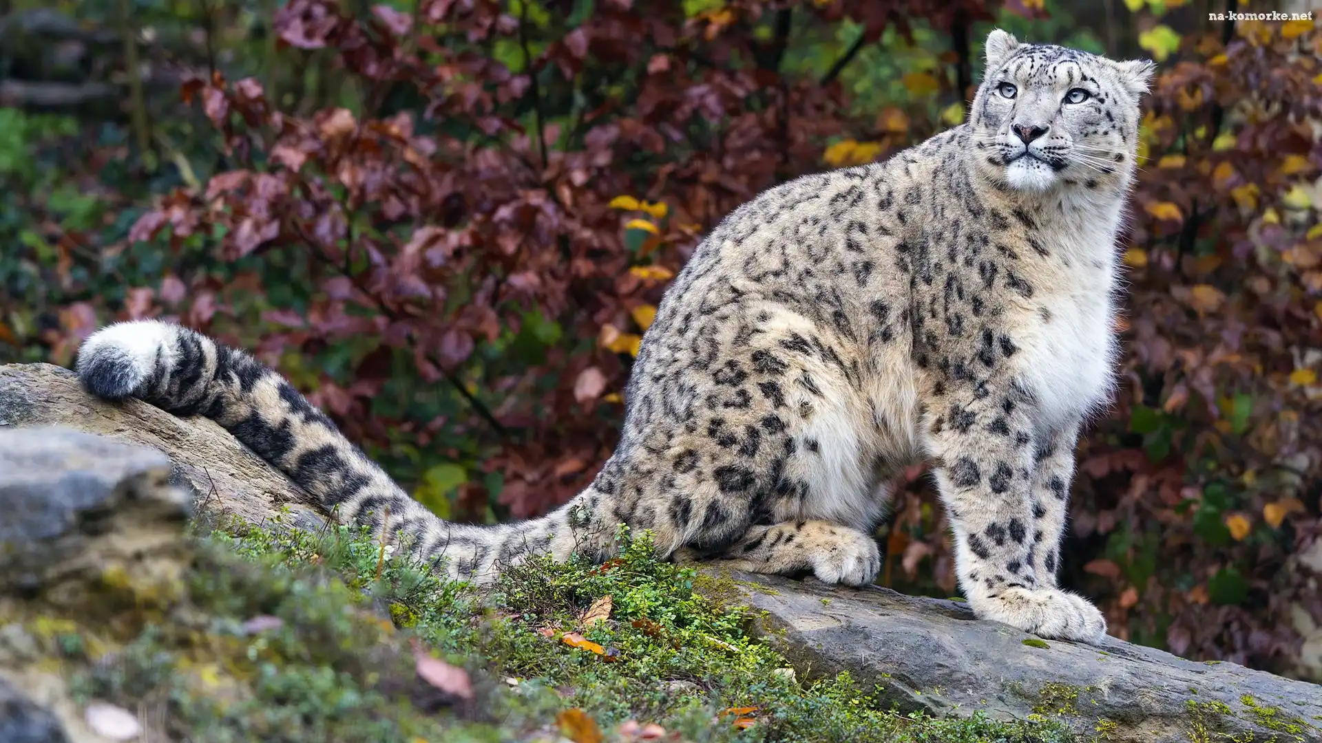 Jesień, Drzewa, Irbis śnieżny, Skała na Komórkę