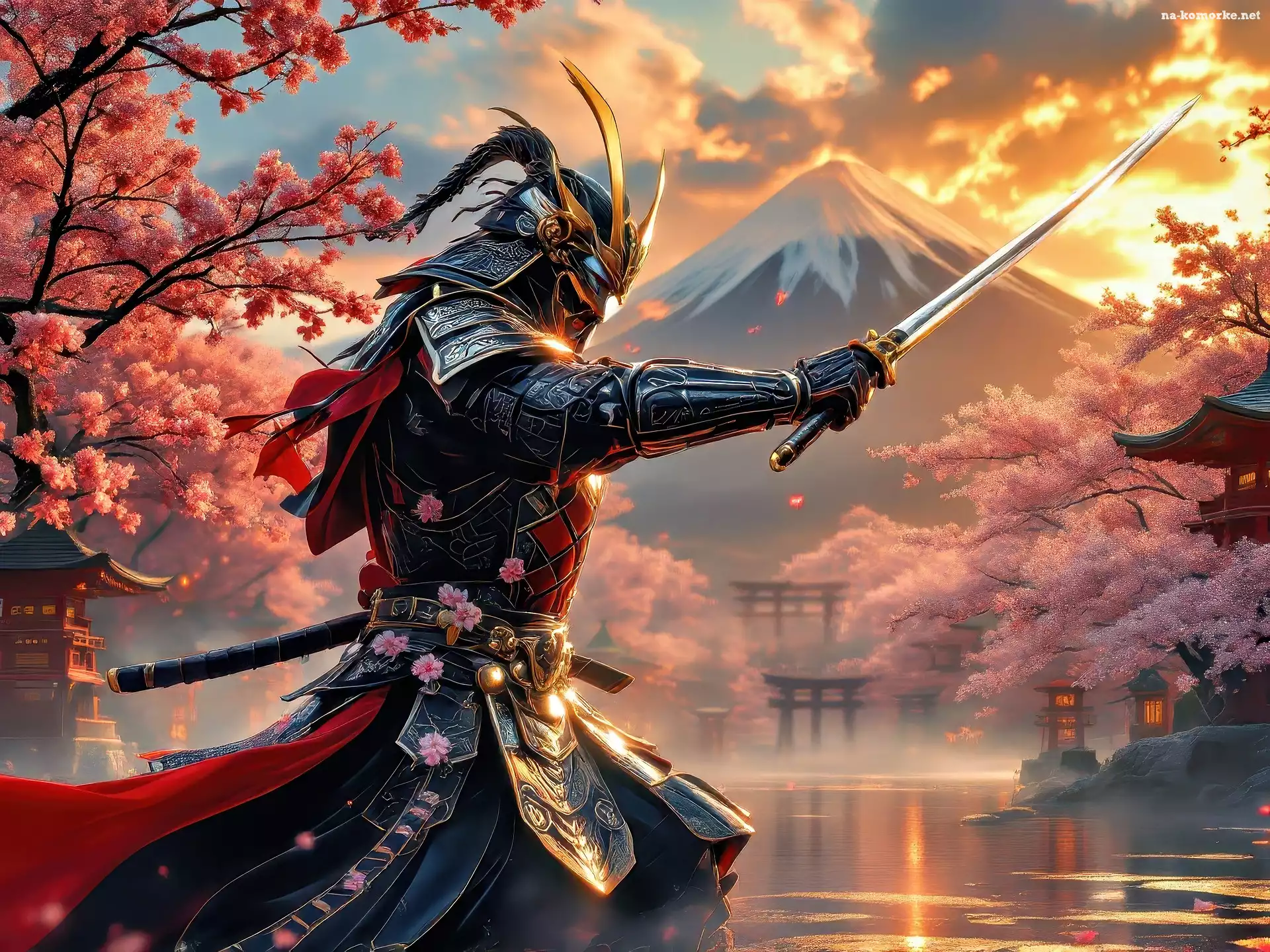 Drzewa, Miecz, Grafika, Zbroja, Samuraj, Wojownik, Japoński, Jezioro, Góra na Komórkę