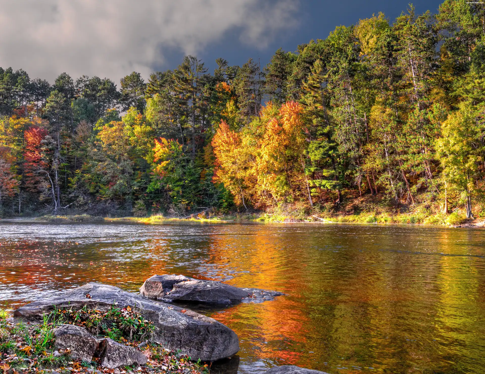 Jesień, Drzewa, Rzeka na Komórkę