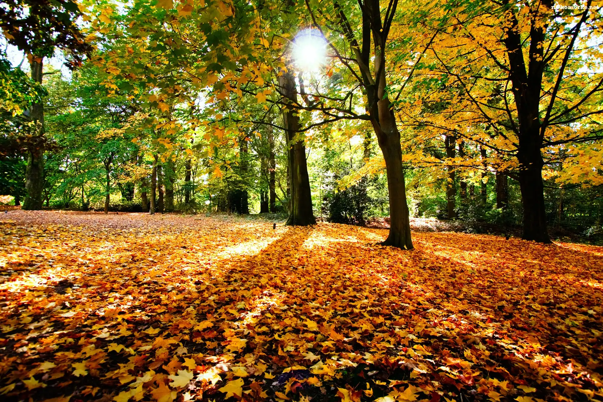 Drzewa, Słońce, Jesień, Liście na Komórkę