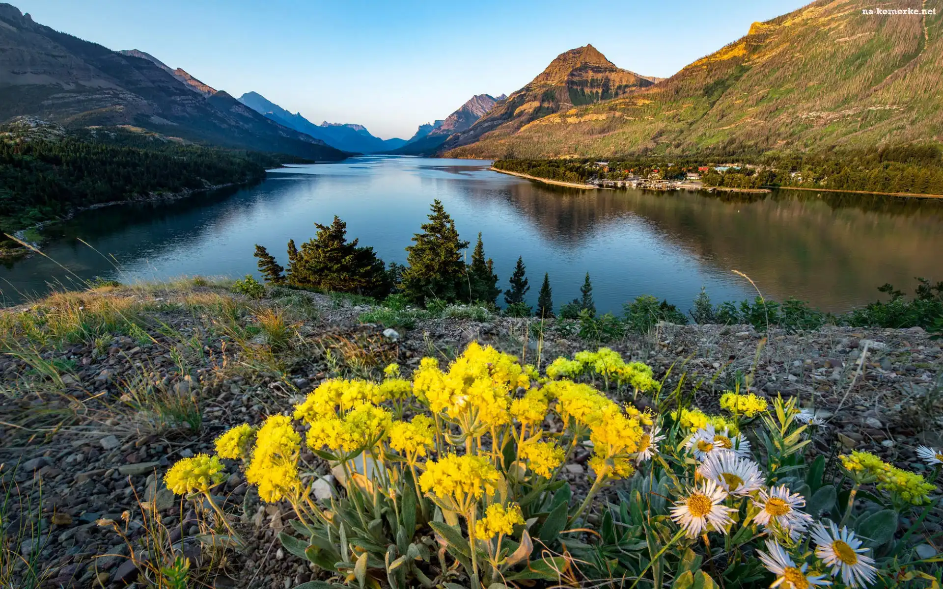 Kamienie, Góry, Kwiaty, Drzewa, Żółte, Jezioro na Komórkę