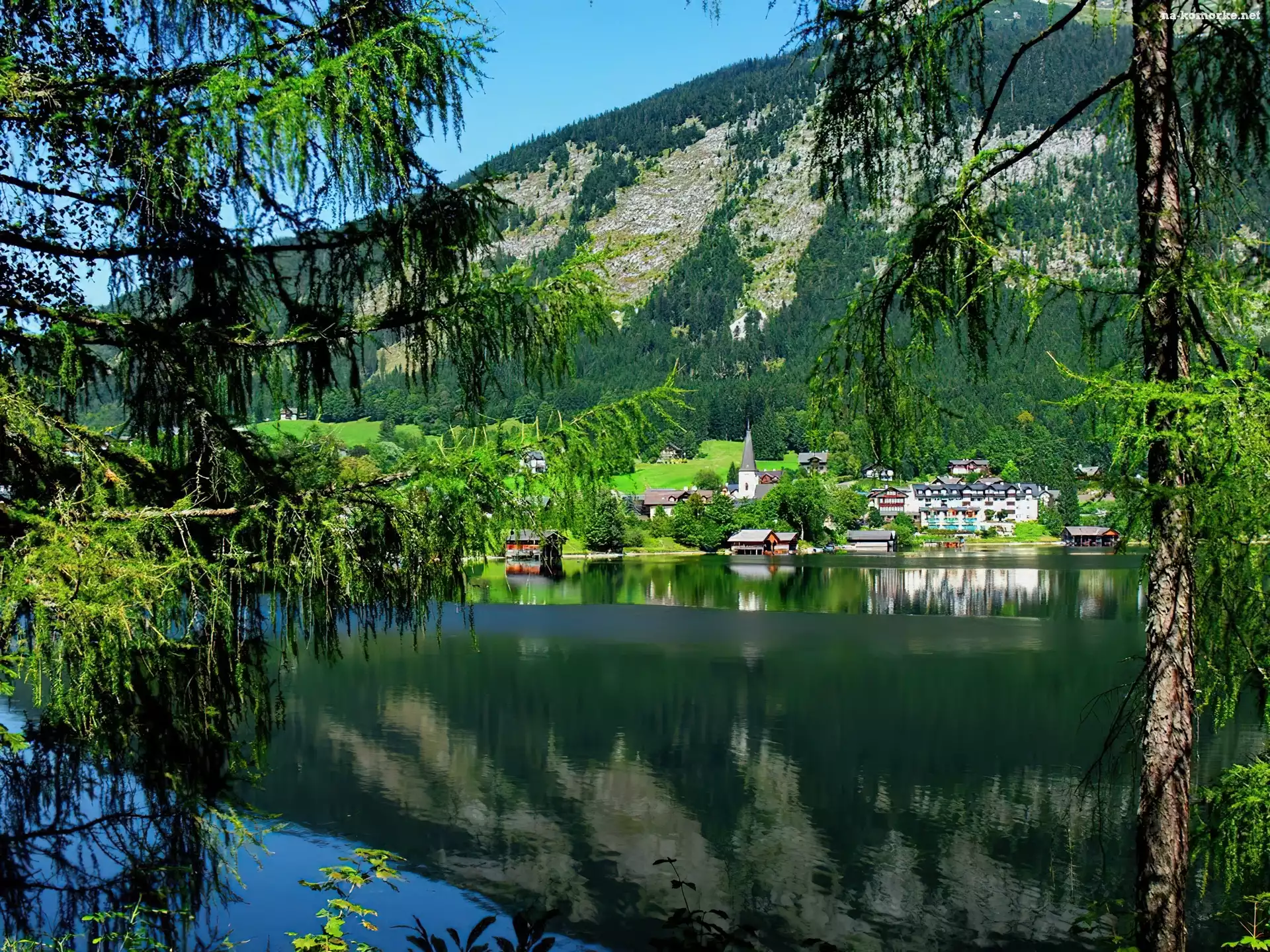 Drzewa, Lasy, Jezioro, Miasteczko na Komórkę