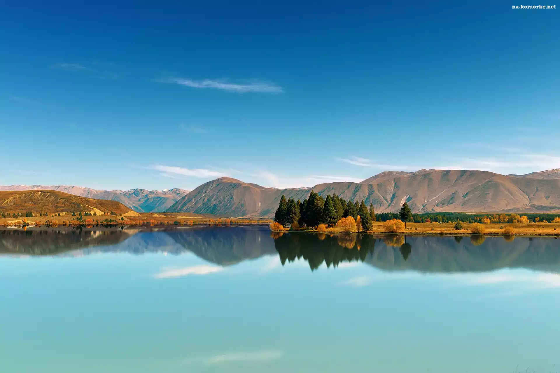 Jezioro, Drzewa, Wzgórza na Komórkę