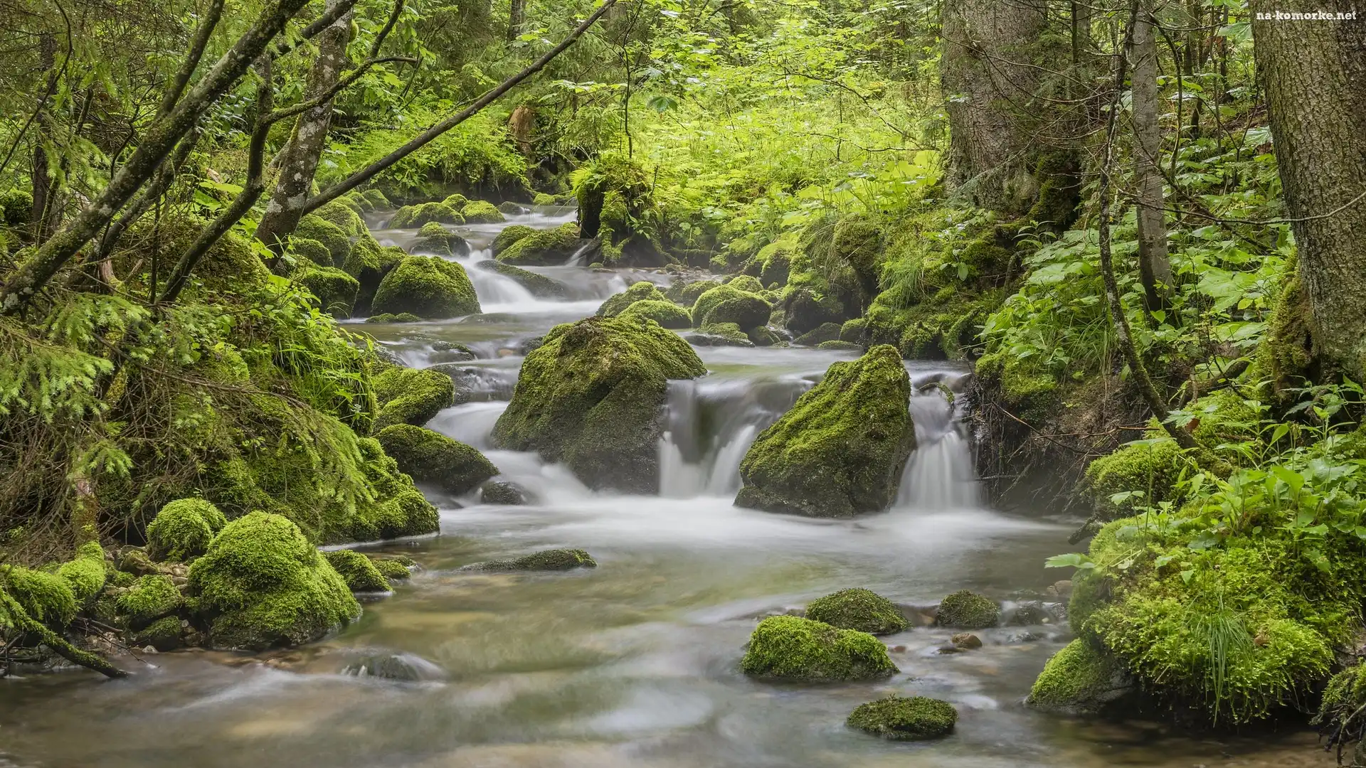 Kamienie, Strumień, Las, Drzewa na Komórkę