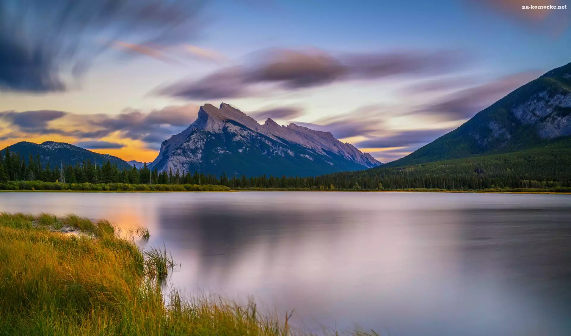 Jezioro, Alberta, Las, Park Narodowy Banff, Drzewa, Kanada, Vermilion Lakes, Góry na Komórkę