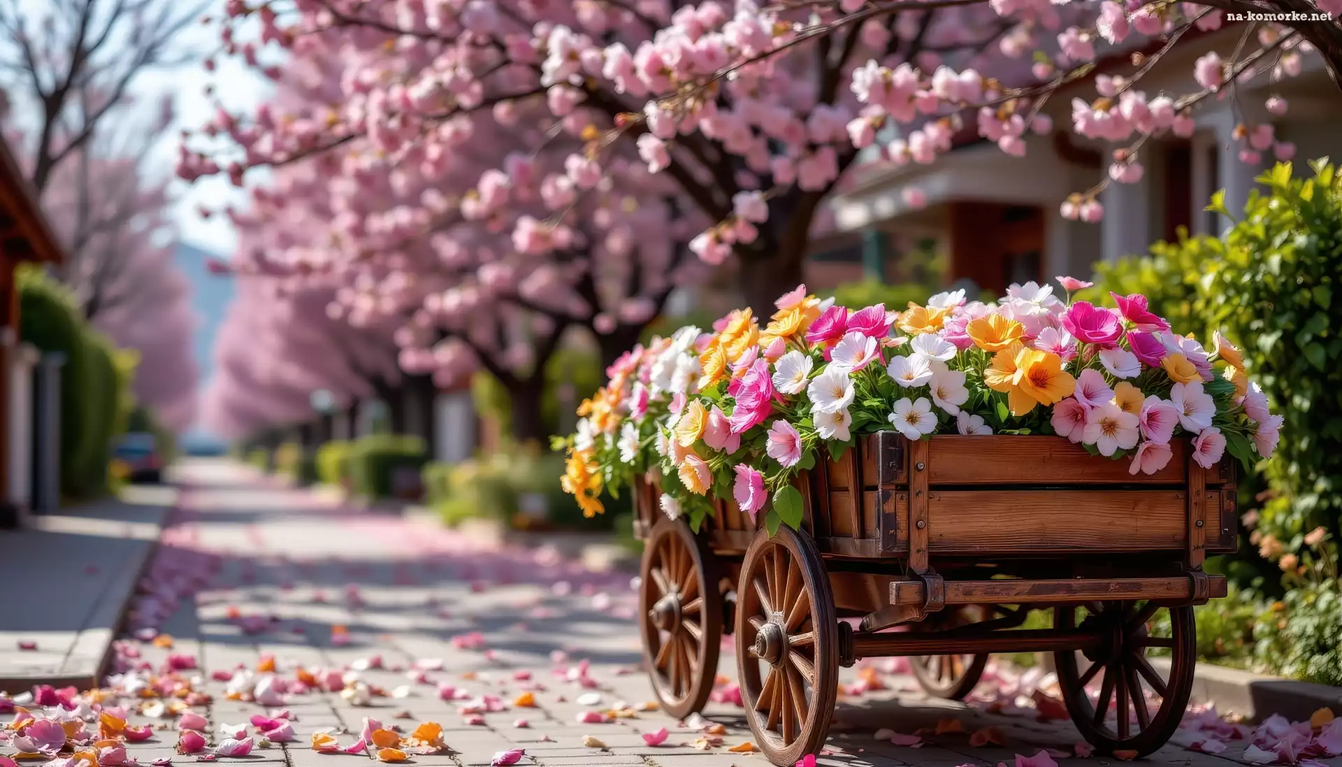 Kwitnące, Wóz, Aleja, Drzewa, Kwiaty, Kolorowe na Komórkę