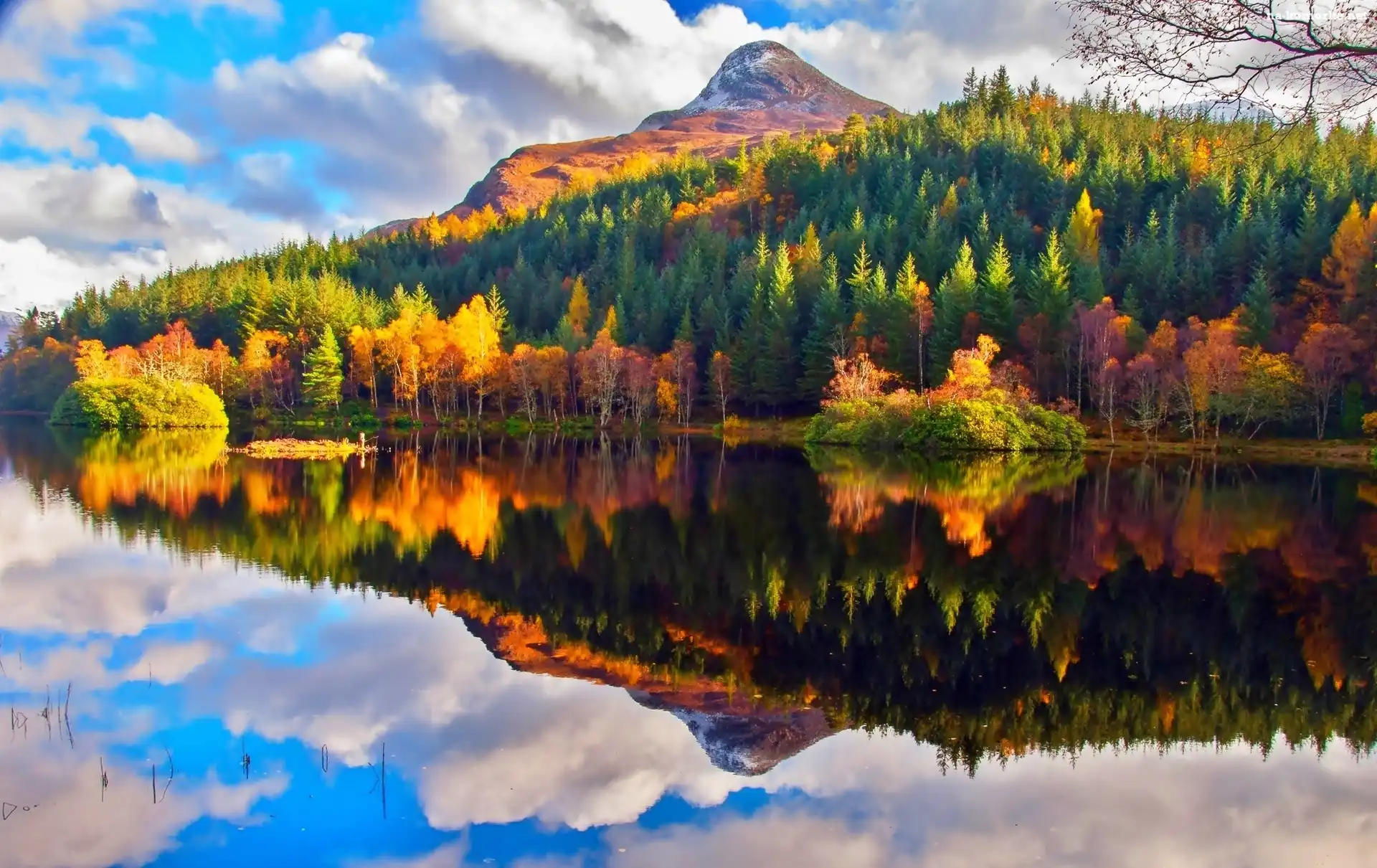 Drzewa, Las, Góry, Jesień, Kolorowe, Jezioro na Komórkę
