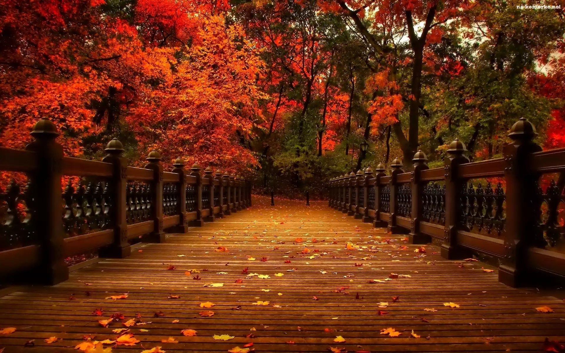 Drzewa, Park, Most, Jesień, Kolorowe, Liście na Komórkę