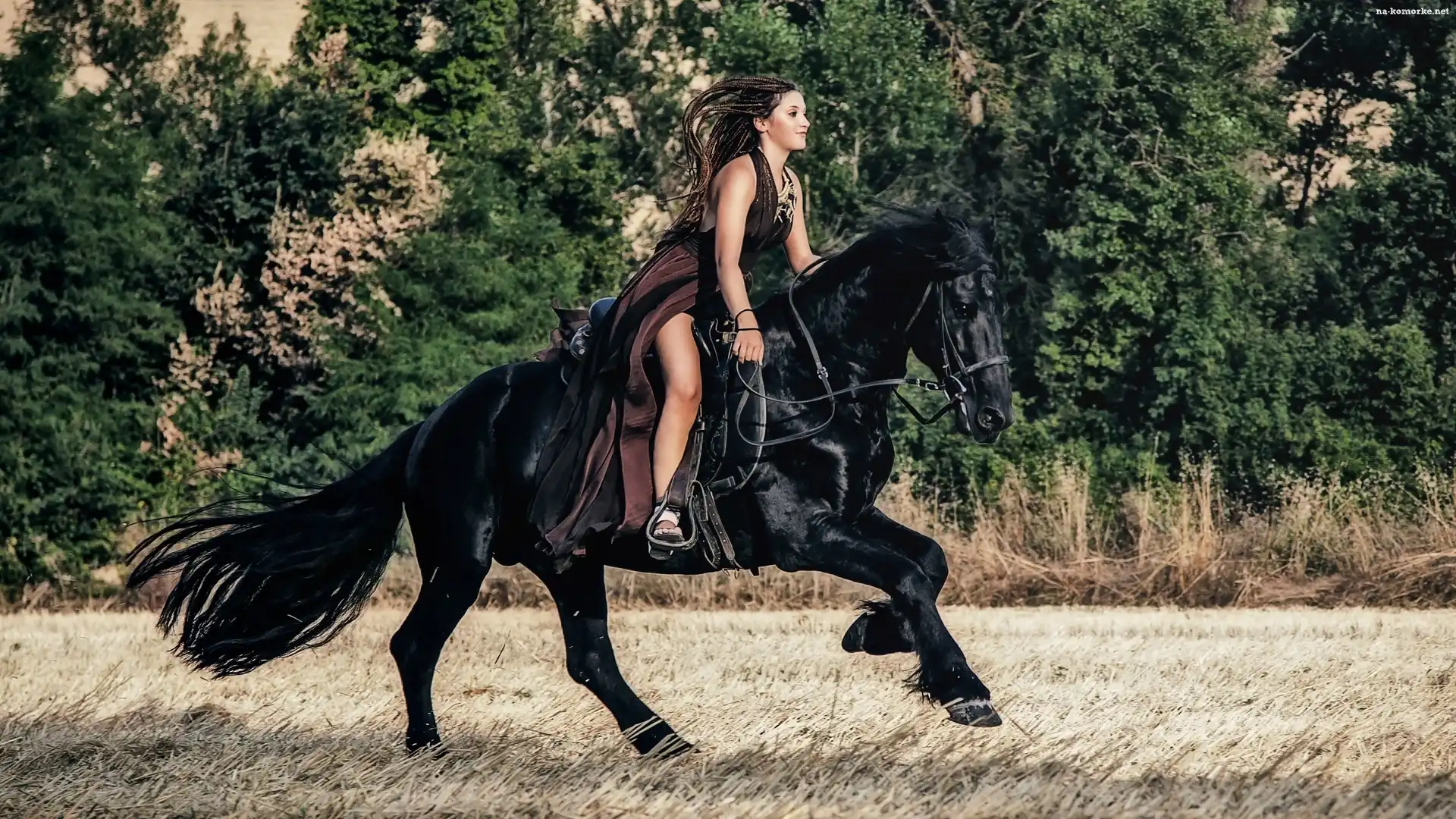 Drzewa, Kobieta, Kary, Koń, Pole na Komórkę