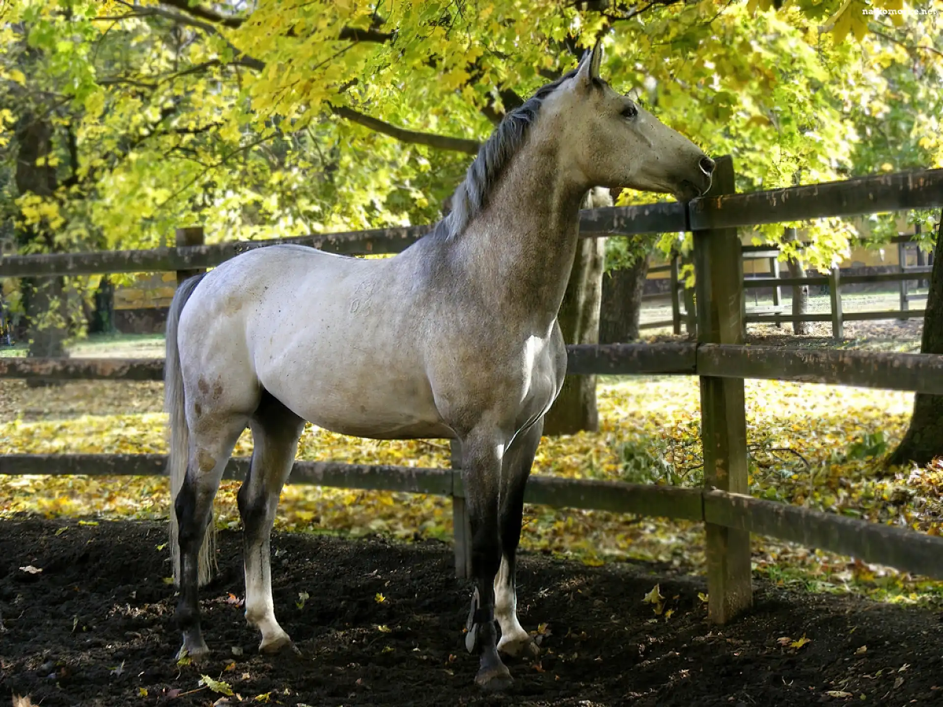 Koń, Drzewa, Płot na Komórkę