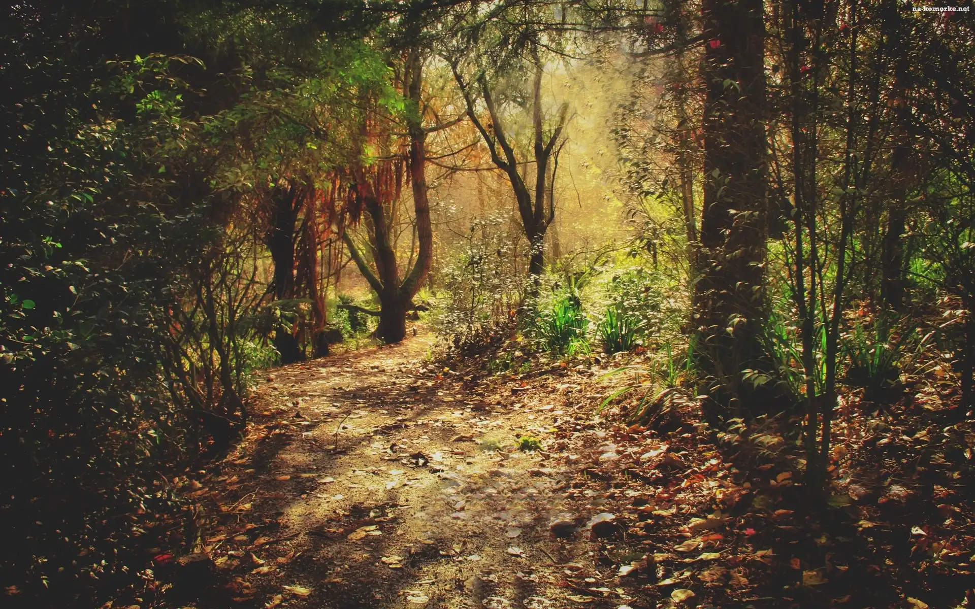 Drzewa, Ścieżka, Las, Światło, Krzewy, Przebijające na Komórkę