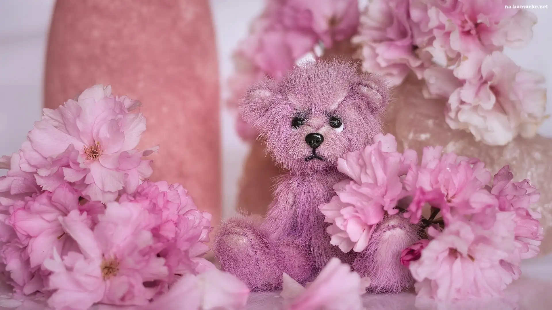 Smutny, Drzewa owocowego, Wiśni, Pluszowy, Miś, Różowe, Kwiaty na Komórkę