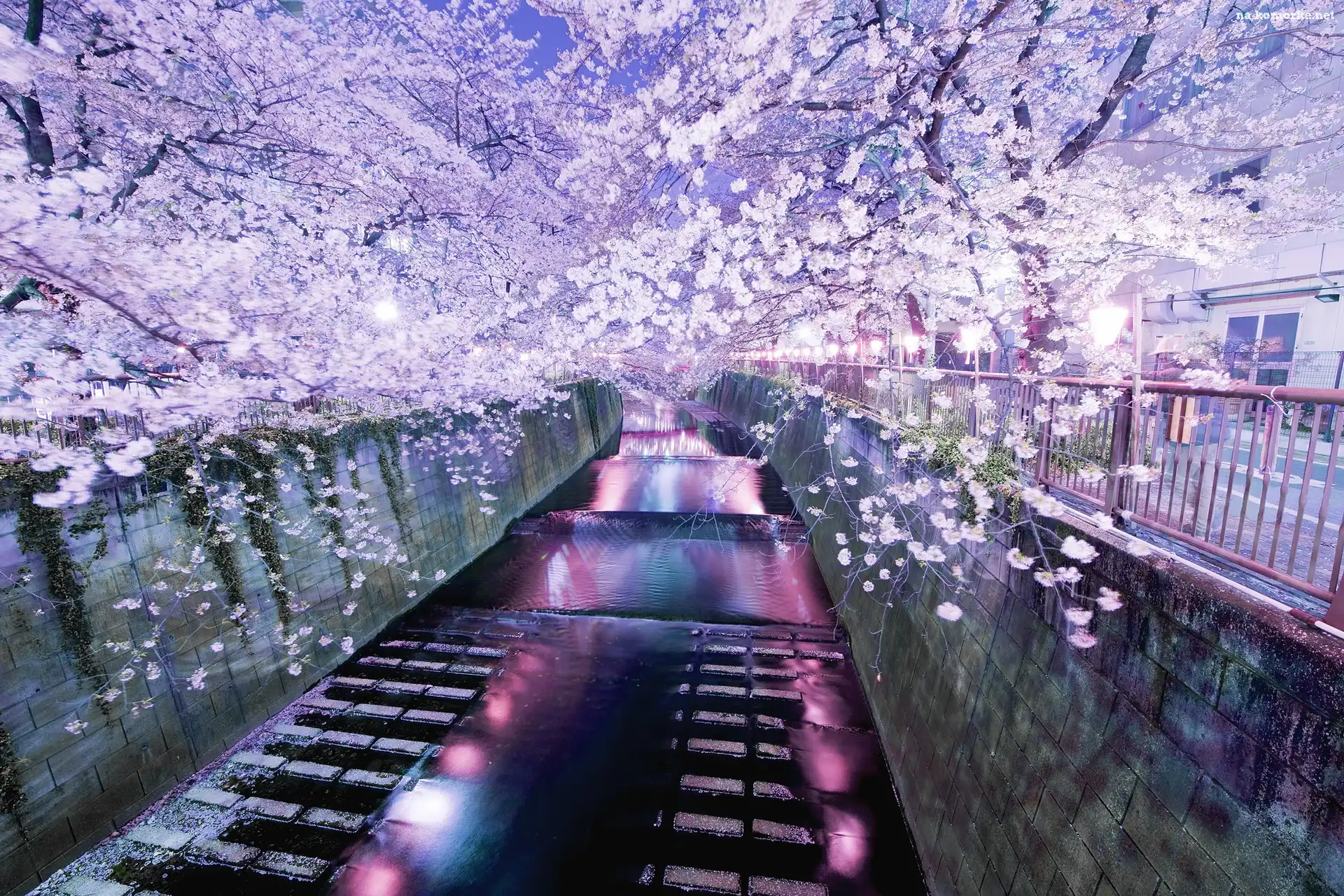 Kwitnące, Drzewa, Rzeka na Komórkę