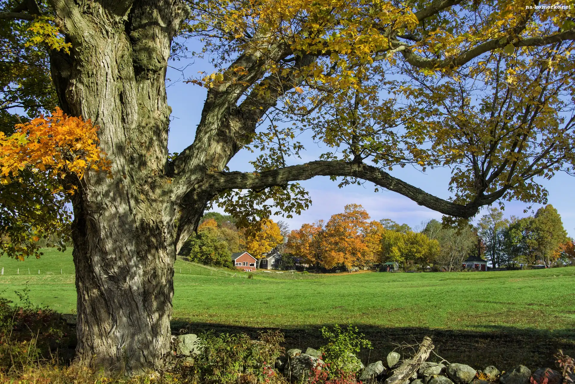 Łąka, Kamienie, Jesień, Drzewa na Komórkę