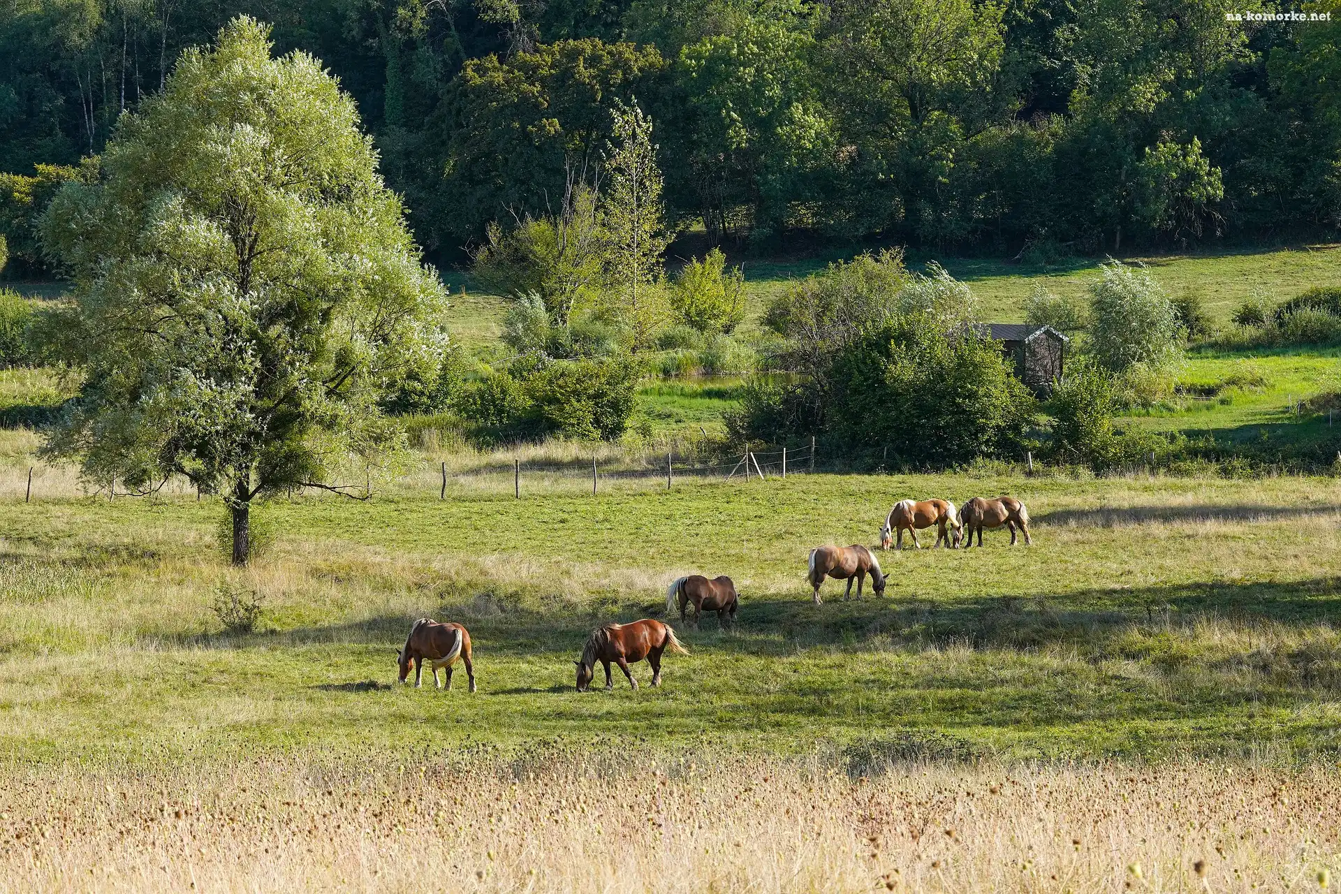 Łąka, Pastwisko, Konie, Drzewa na Komórkę