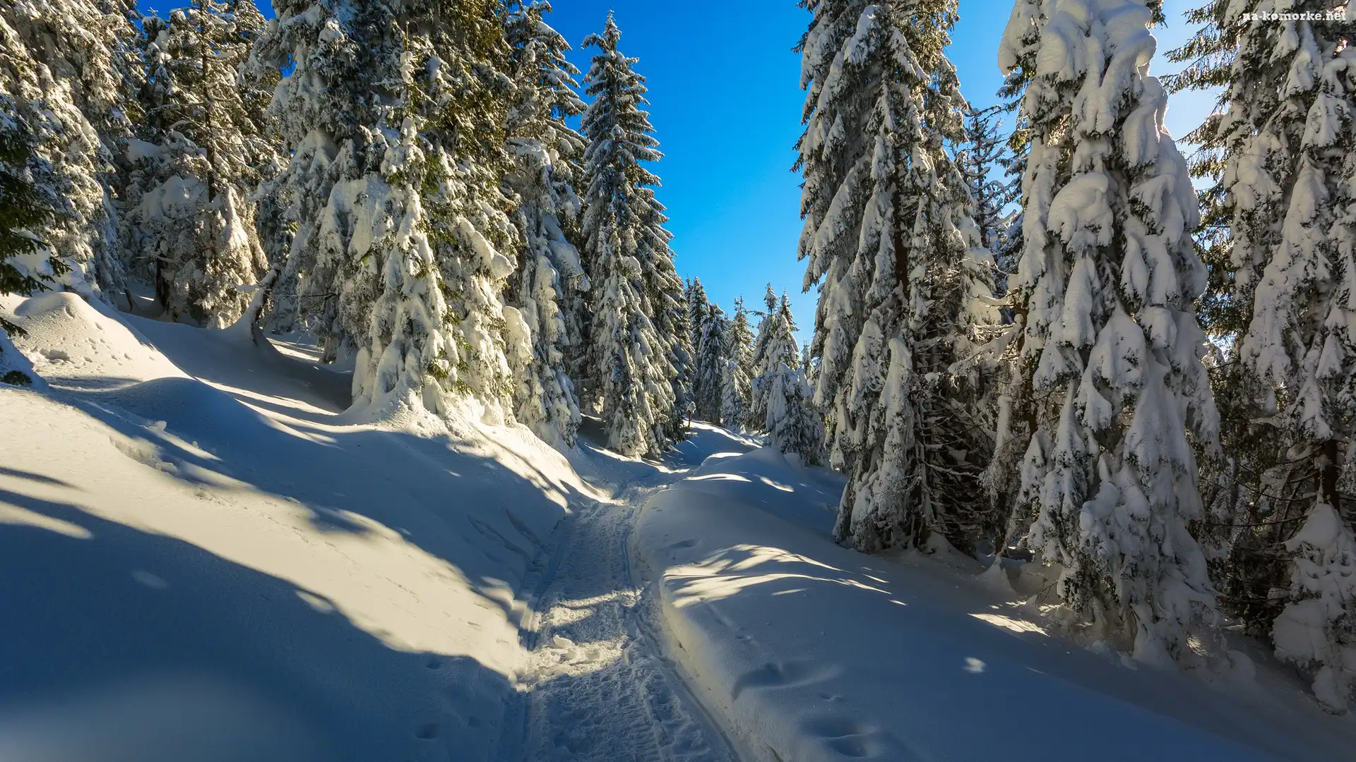 Zima, Drzewa, Las, Śnieg, Droga na Komórkę