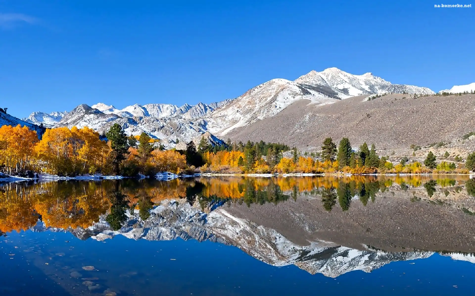 Drzewa, Góry, Jesień, Jezioro, Las, Odbicie na Komórkę