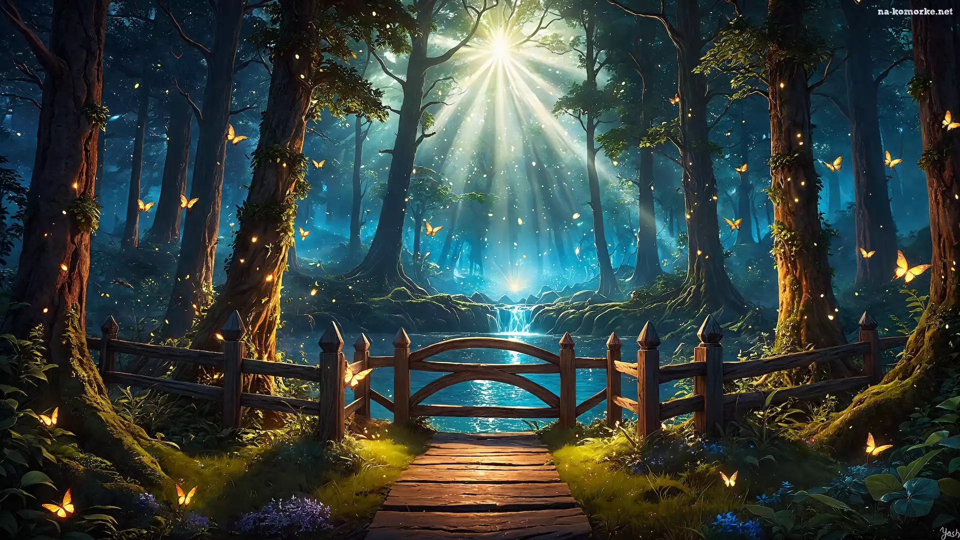 Ogrodzenie, Motyle, Las, Grafika, Jezioro, Promienie słońca, Drzewa na Komórkę