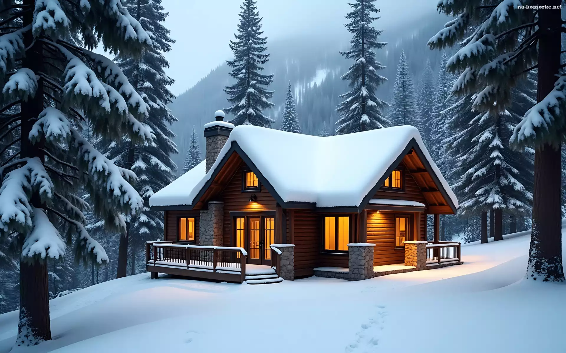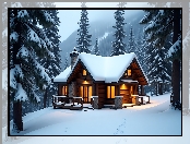 Śnieg, Zima, Światła, Drzewa, Dom, Las na Komórkę