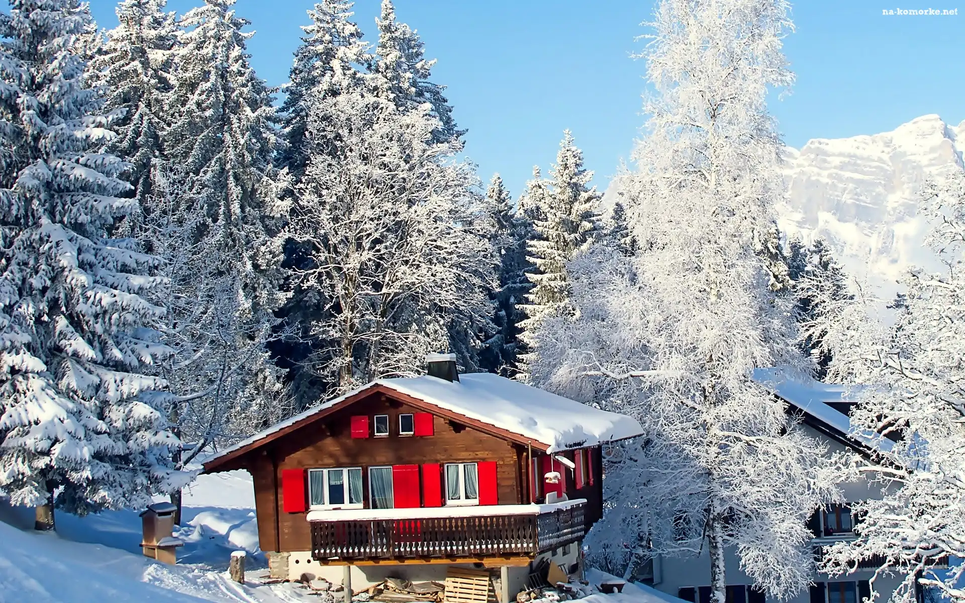 Drzewa, Śnieg, Zima, Dom, Las, Góry na Komórkę