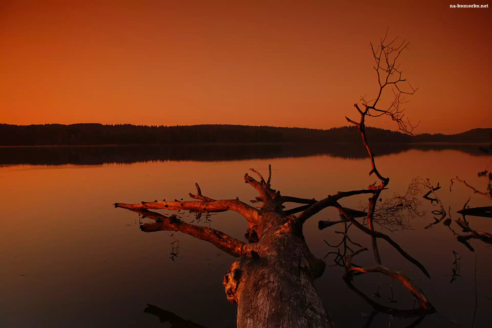 Drzewa, Zachód, Jezioro, Lasy, Konar na Komórkę