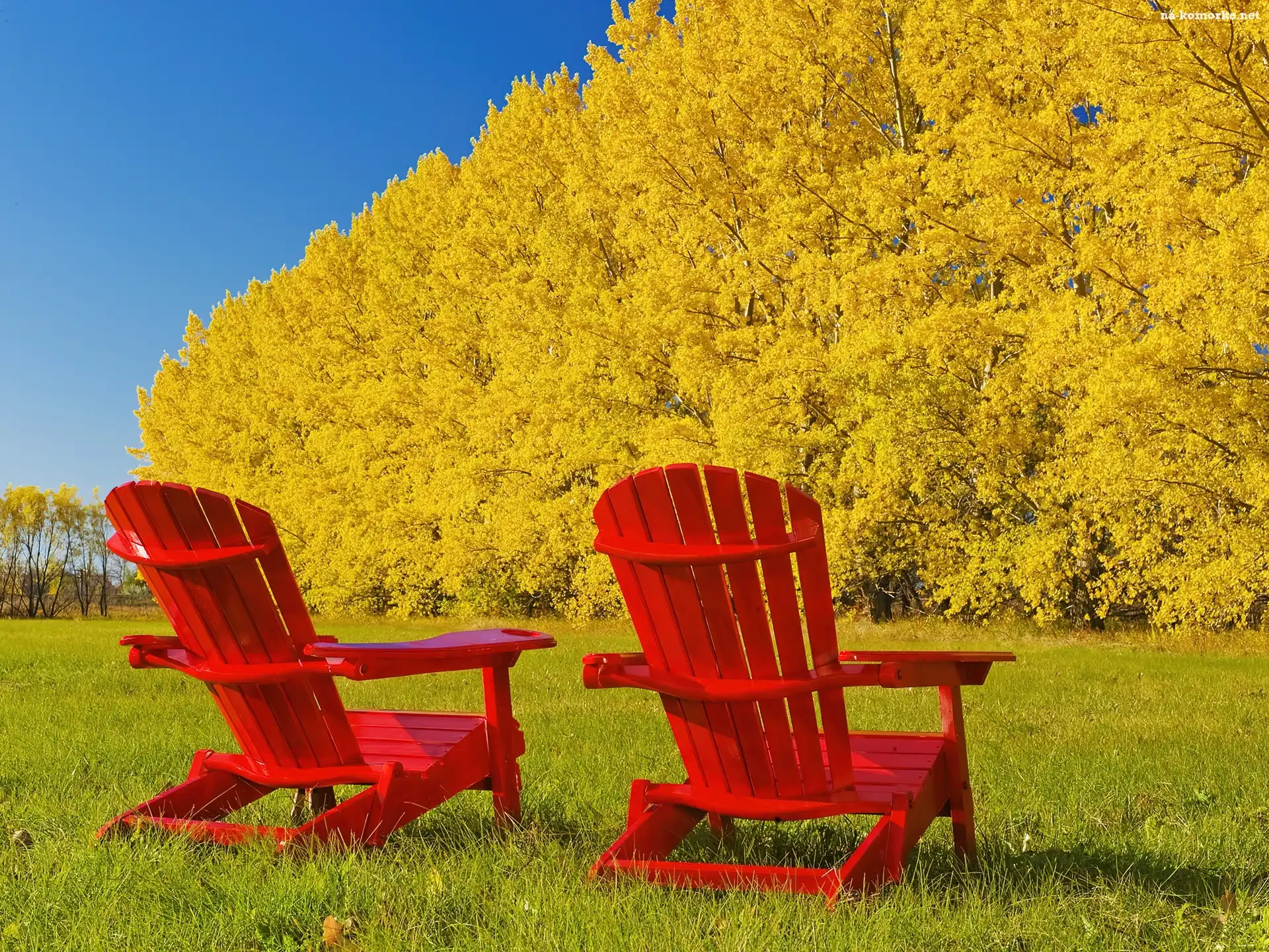 Drzewa, Czerwone, Drewniane, Leżaki, Żółte na Komórkę