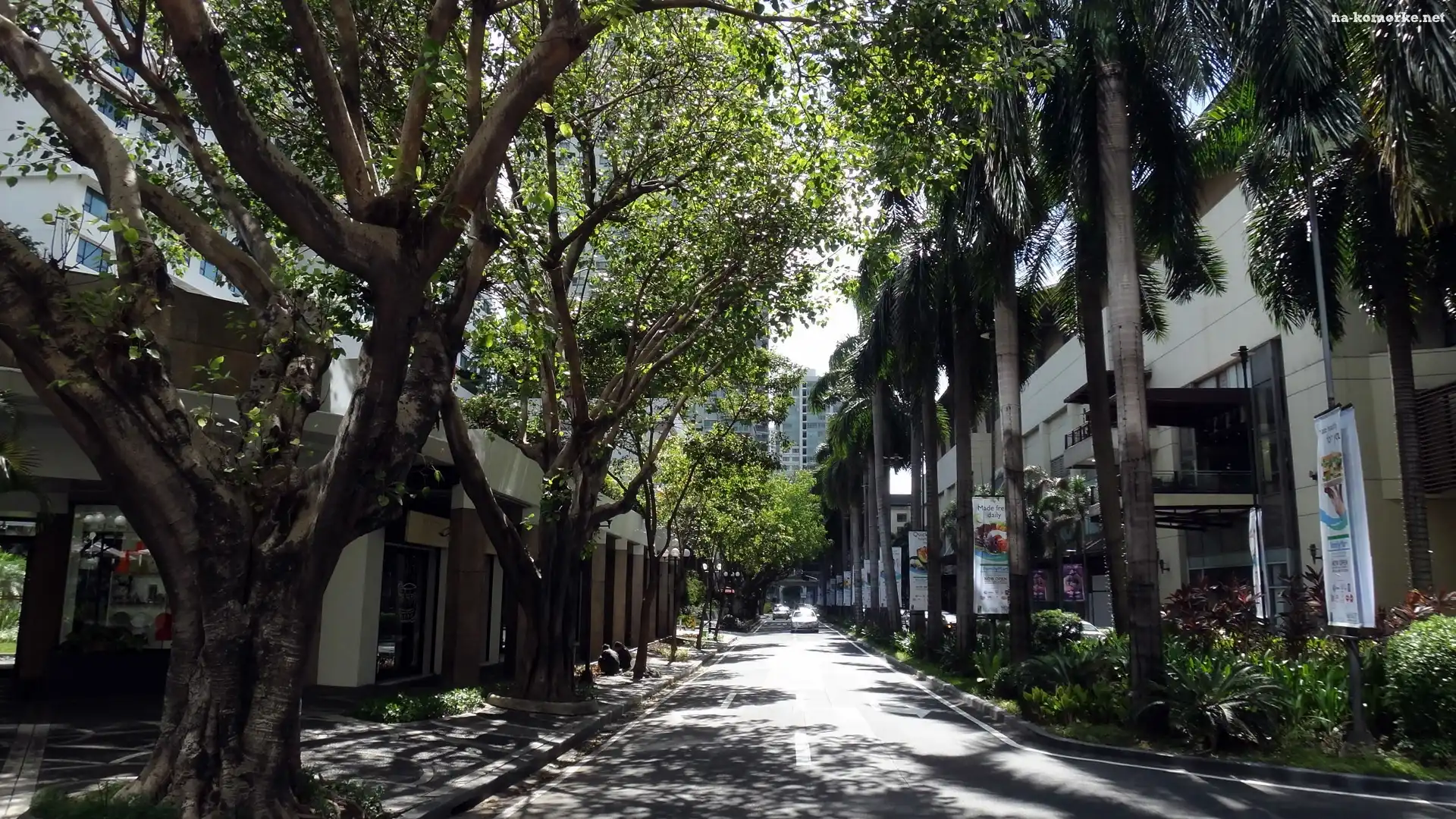 Światło, Manila, Uliczka, Drzewa, Przebijające na Komórkę
