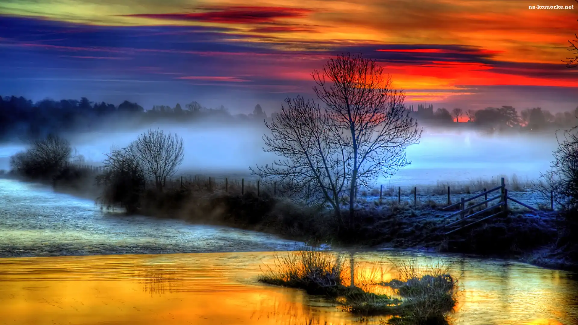 Mgła, Drzewa, Woda na Komórkę