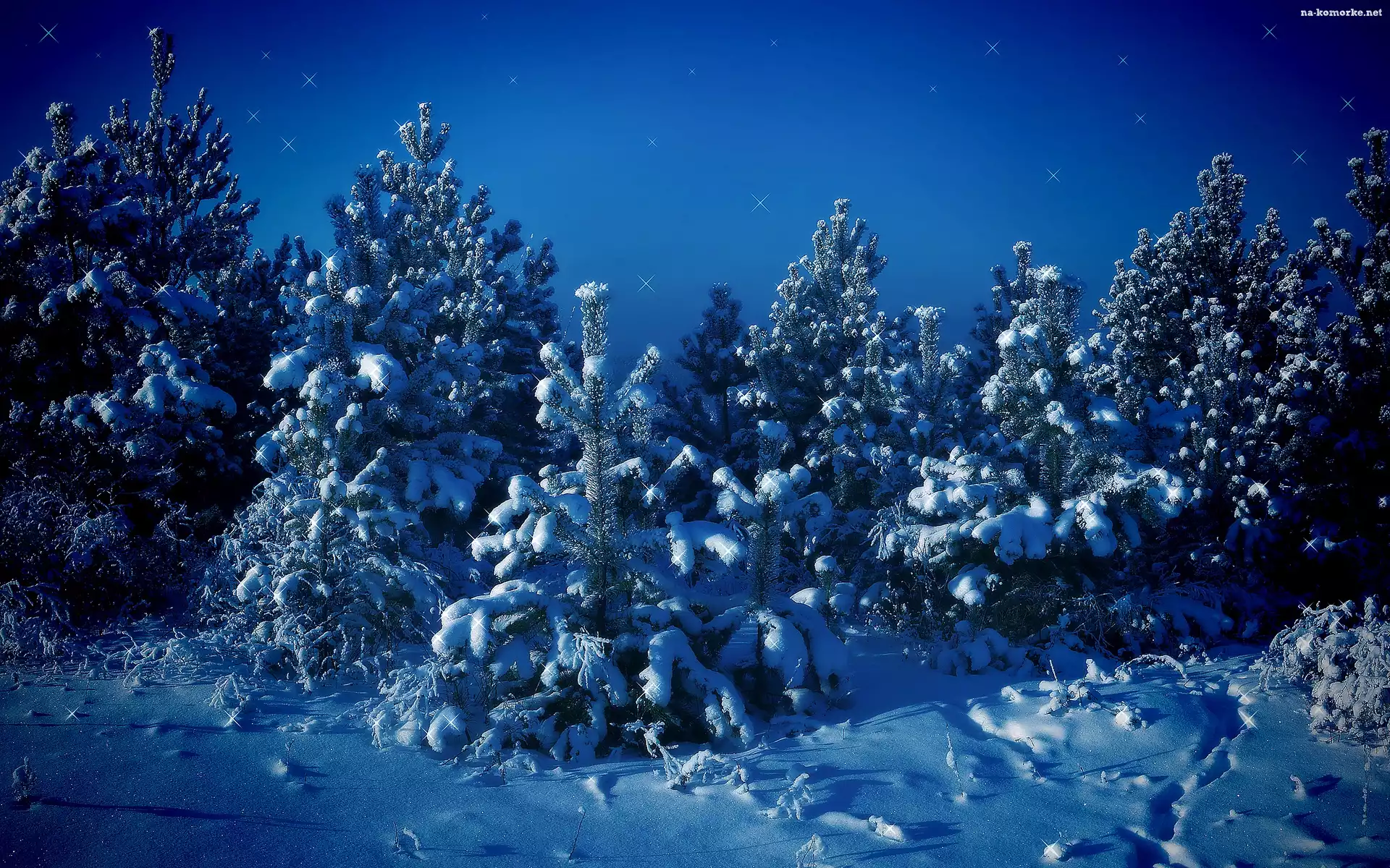 Drzewa, Zima, Śnieg, Świerkowy, Mróz, Las na Komórkę
