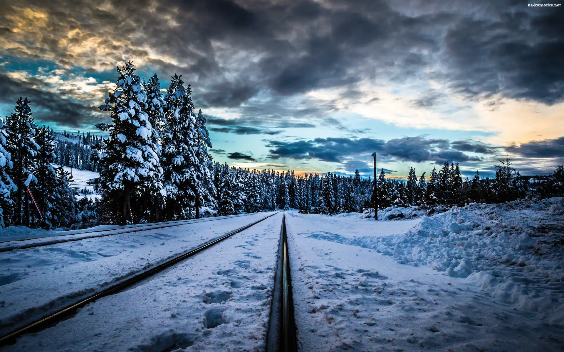 Drzewa, Zima, Tory, Niebo, Chmury na Komórkę