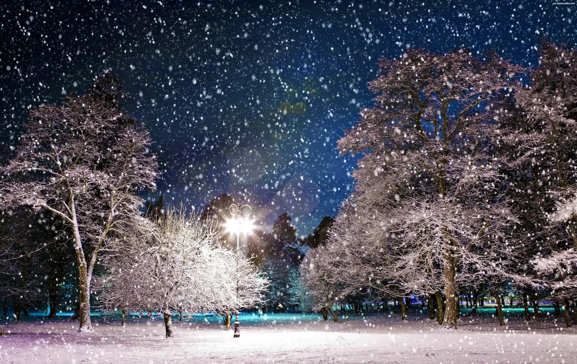 Drzewa, Park, Śnieg, Zima na Komórkę