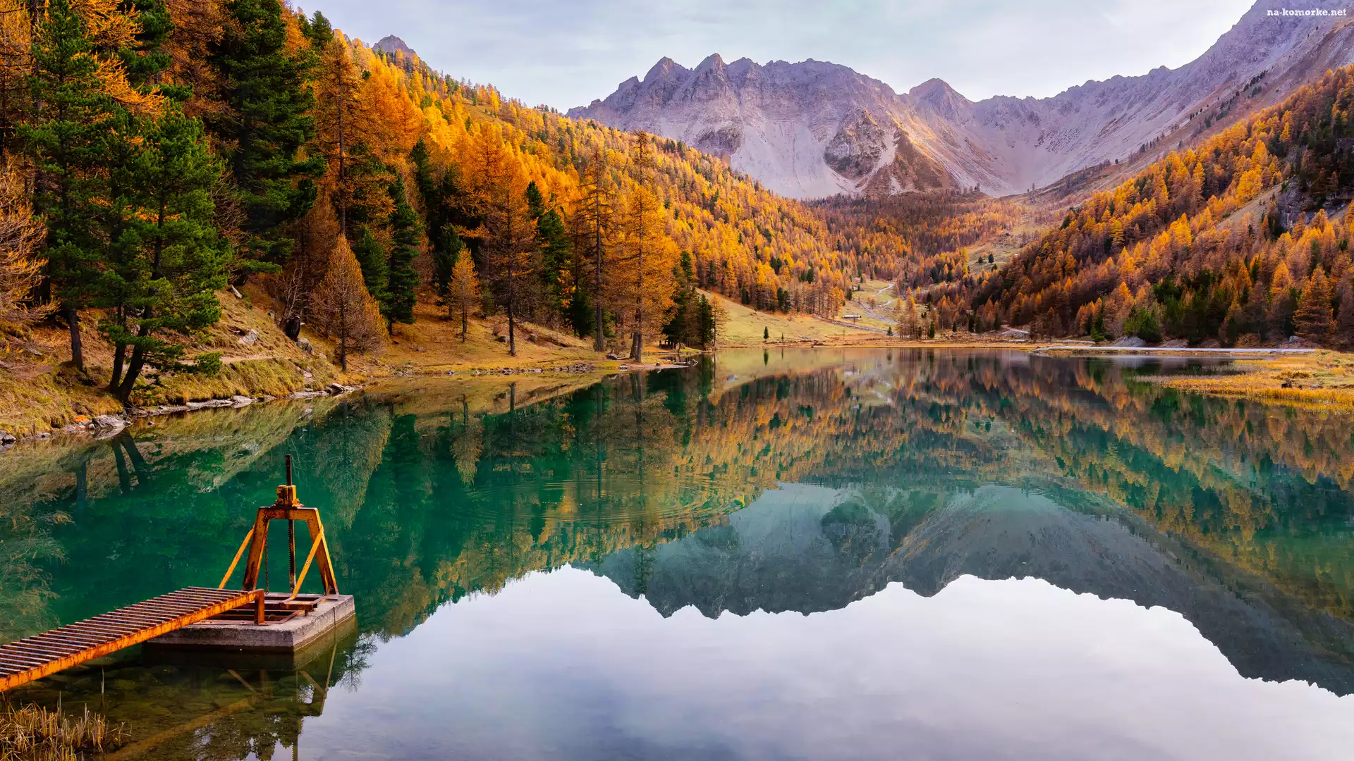 Jezioro, Drzewa, Odbicie, Góry, Jesień na Komórkę