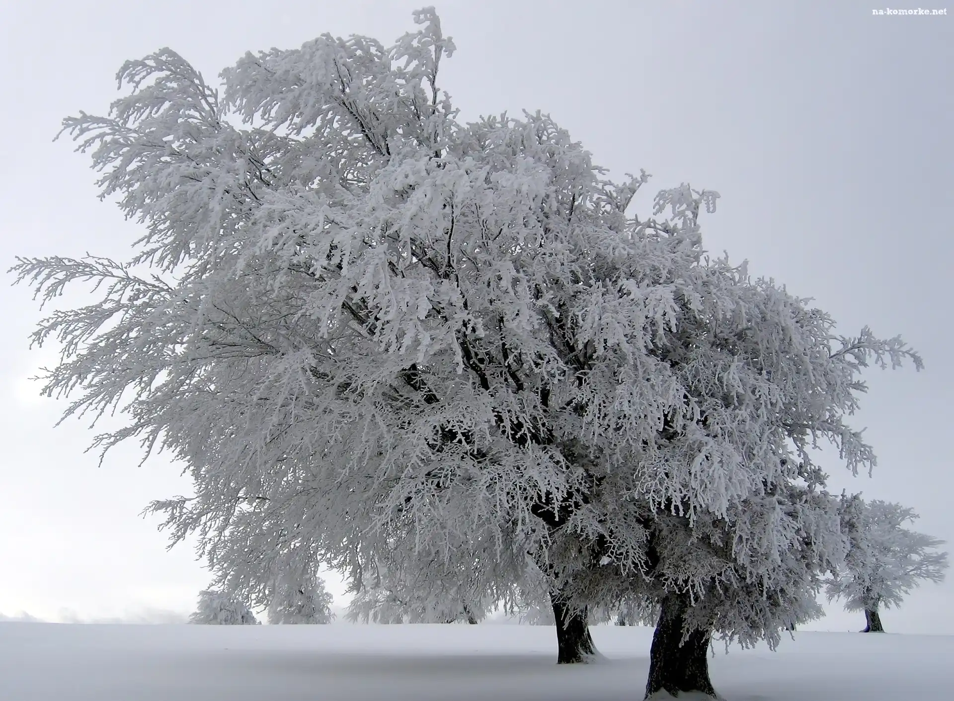 Ośnieżone, Drzewa, Śnieg na Komórkę