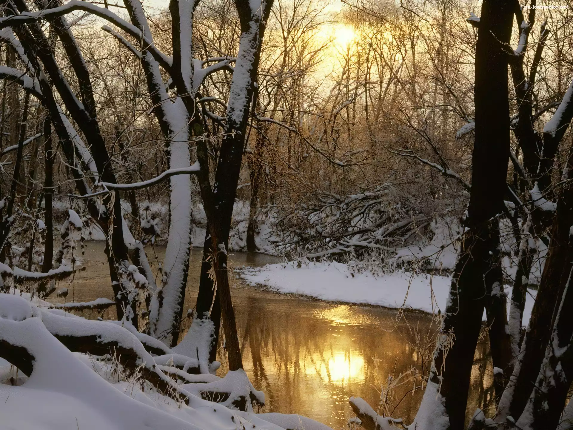 Ośnieżone, Drzewa, Rzeka na Komórkę