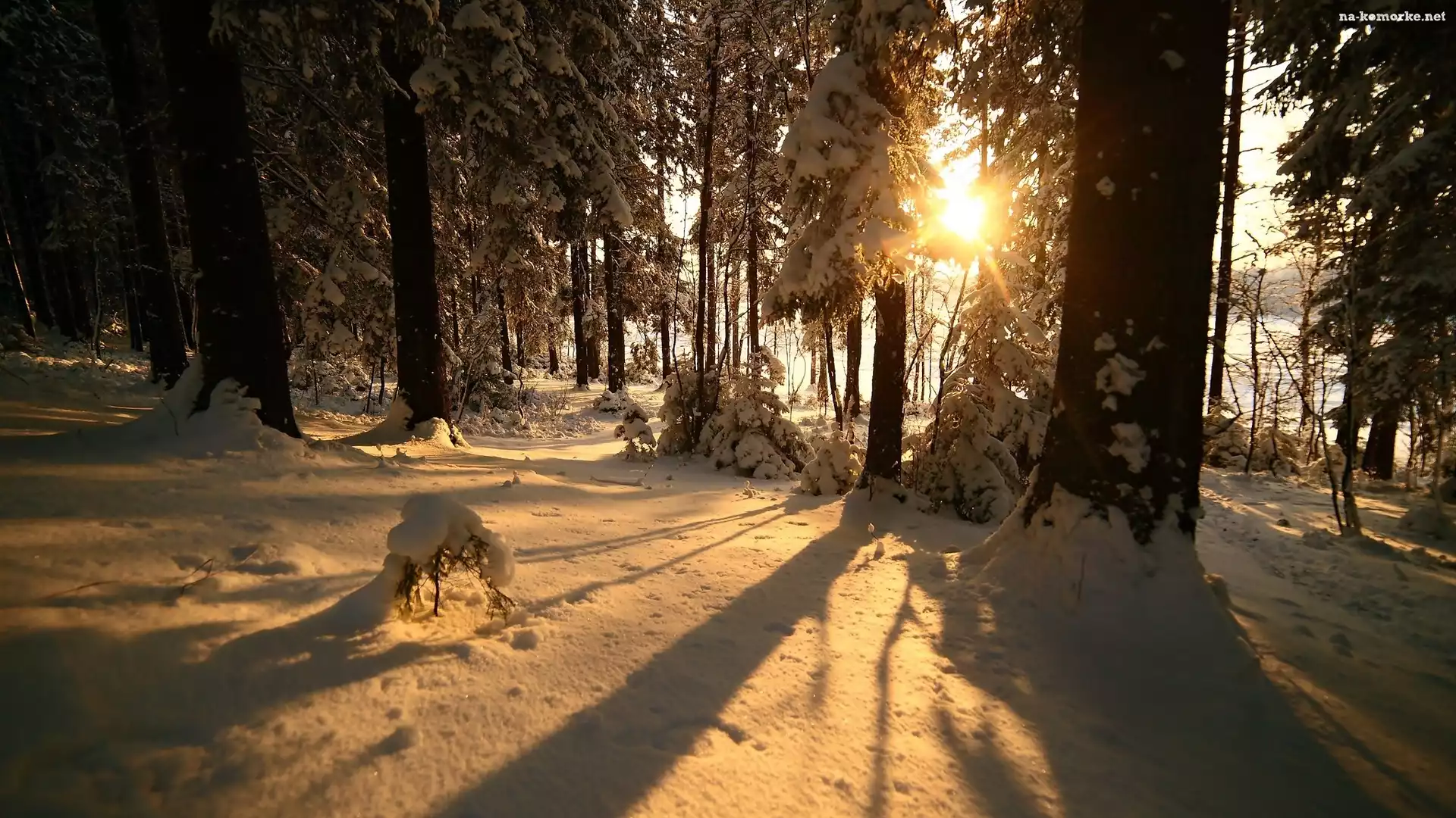 Drzewa, Las, Zima, Cień, Ośnieżone, Słońce na Komórkę