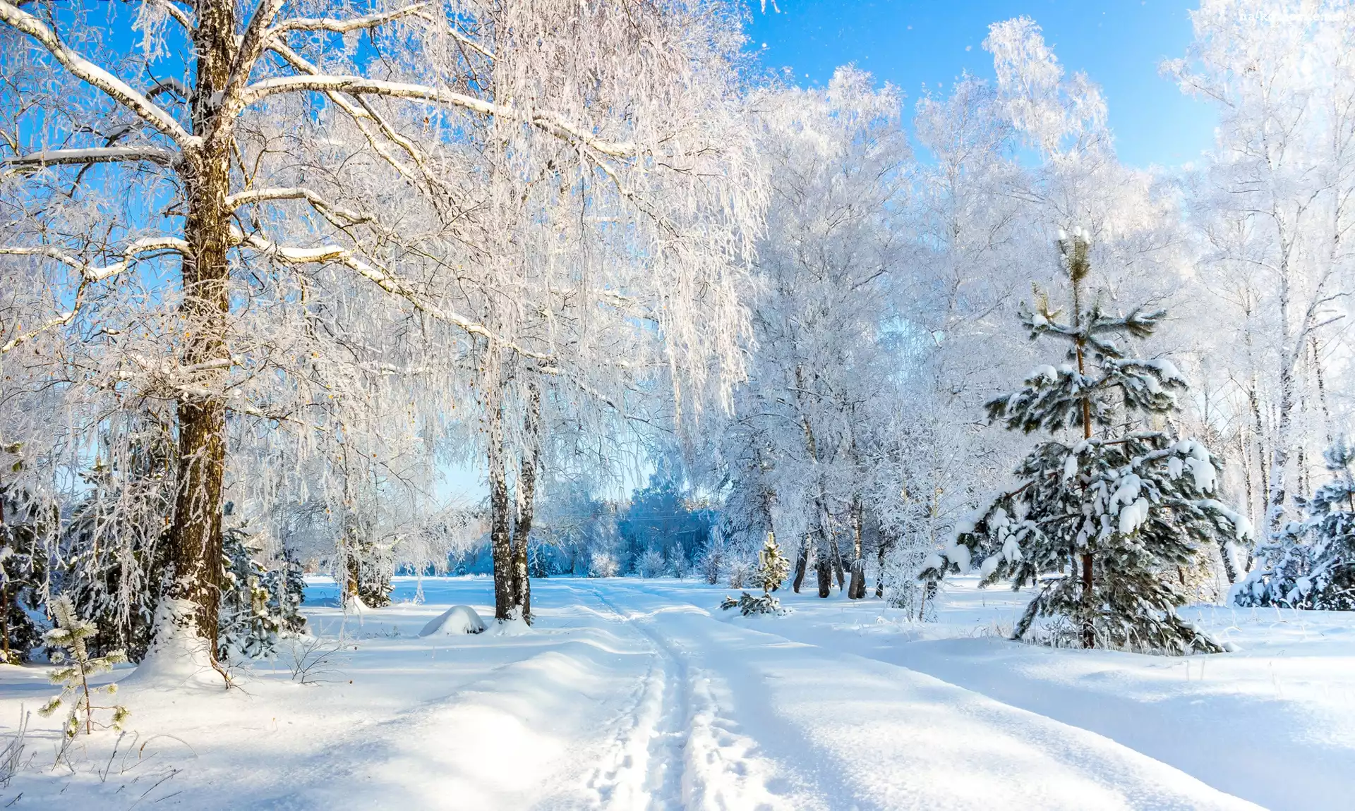 Drzewa, Śnieg, Zima, Droga, Ośnieżone, Zaśnieżona na Komórkę